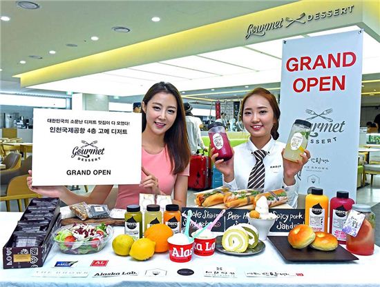 고메 디저트는 홍대, 청담동 등에서 인기를 끌고 있는 8개의 맛집 매장으로 구성됐다. 비행기 탑승 시간에 맞춰 간편하게 끼니를 챙길 수 있도록 테이크아웃 전문점 카페아모제, 유기농 베이커리 전문점 더브라운(The Brown Bakery)과 단팥빵 전문점 서울연인단팥빵 및 궁중떡 명가 비원떡집이 입점됐다.