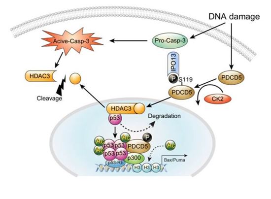 PDCD5(Programed cell death 5)는 DNA 손상에 의해 증가해 암세포의 사멸에 관여한다고 알려져 있는 단백질인데 그동안 정확한 역할이 규명되지 않았다.