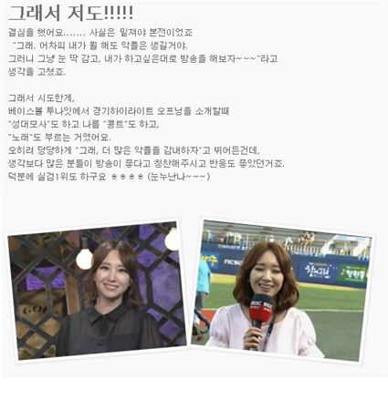[아시아경제 온라인이슈팀] 김선신 아나운서의 중계에 대해 네티즌들의 공방이 이어지고 있는 가운데 과거 그녀가 슬럼프에 관해 적은 글이 이목을 끌고 있다.