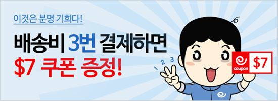 1차 이벤트로 오는 8월26일까지 몰테일 미국센터에서 배송비를 3번 이상 결제한 고객에게 몰테일 배송비 7달러 쿠폰을 증정한다.