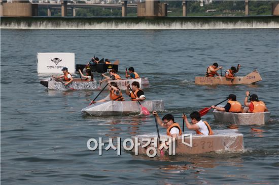 [아시아경제 원다라 기자] 재활용 박스로 만든 '종이배' 레이스가 펼쳐진다. 카약 등 다양한 경품도 마련됐다.