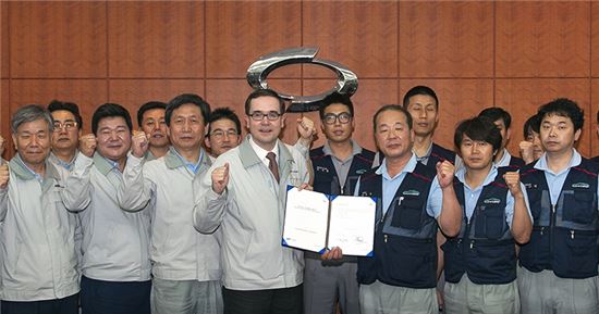 르노삼성도 노조가 지난 22일 실시한 합의한 투표에서 93%이 압도적인 찬성표로 임협을 마무리했다. 노사양측은 ▲기본급 2.3% 인상 ▲생산성 격려금 지급 ▲통상임금 자율합의 ▲ 호봉제 폐지를 통한 인사제도 개편▲임금피크제 및 확정기여형 퇴직연금 도입 ▲대타협 격려금 700만원 등에 합의했다.