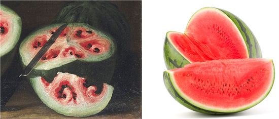미국 인터넷 매체 복스닷컴(vox.com)은 28일 스탄치가 그린 수박의 속과 요즘 우리가 먹는 수박 과육의 차이에 대한 닌하우스 교수의 설명을 전했다.