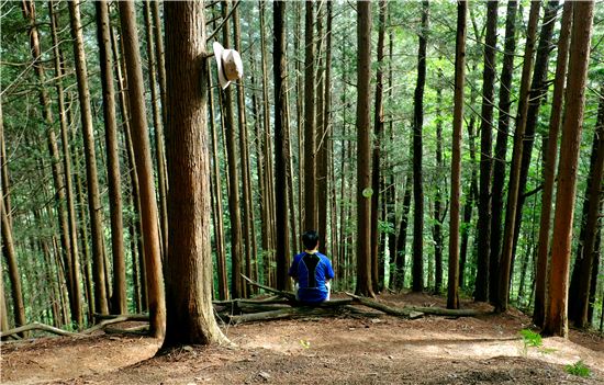[아시아경제 조용준 여행전문기자]숲길에 들었습니다. 바늘같은 잎을 가진 침엽수로 이뤄진 숲입니다. 침엽수 숲 중에서 으뜸은 단연 편백나무숲입니다. 하늘을 찌를 듯 곧게 치솟은 편백나무가 도열한 숲의 진가는 그 속에 들어서면 비로소 느낄 수 있습니다. 산새와 편백나무사이를 헤치며 부는 바람이 상쾌합니다. 걸음은 한결 더 기운차고 숲은 싱그럽습니다. 길을 걷다보면 온 몸으로 초록의 물줄기가 쏟아집니다. 어느새 몸은 물론이고 마음까지 맑아지는 기분입니다. '치유의 숲'이라는 이름에 걸맞는 곳입니다.