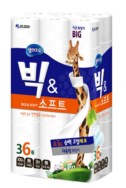 함께 출시된 모나리자의 고품격 브랜드 벨라지오의 '빅&소프트데코' 역시 무색 무향의 순백 화장지로 100% 천연펄프를 사용해 깨끗하고 일반 화장지보다 3배 더 도톰해서 경제적이다.