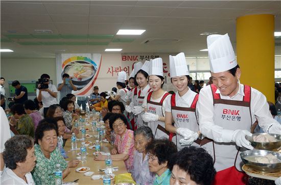 [아시아경제 김대섭 기자] BNK부산은행은 부산 문현동 성동초등학교에서 지역 노인 600명을 초청해 삼계탕을 대접하는 행사를 열었다고 12일 밝혔다.