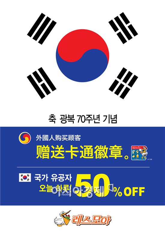 [아시아경제 김현정 기자] 슈즈 멀티숍 레스모아가 광복절 70주년을 기념해 다양한 광복절 이벤트를 실시한다고 13일 밝혔다.