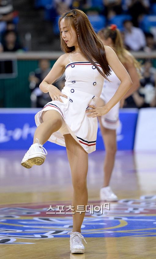 [아시아경제 온라인이슈팀] '2015 KCC 프로-아마농구 최강전' 부산 KT 소닉붐-울산 모비스 피버스 농구 경기가 15일 오후 서울 송파구 잠실동 서울특별시학생체육관에서 열렸다. 치어리더가 멋진 응원을 하고 있다.