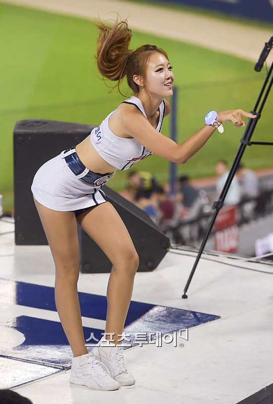 [아시아경제 온라인이슈팀] 18일 오후 서울 송파구 잠실동 잠실구장에서 열린 2015 타이어뱅크 KBO 리그 삼성 라이온즈-두산 베어스 경기. 치어리더가 멋진 응원을 펼치고 있다.