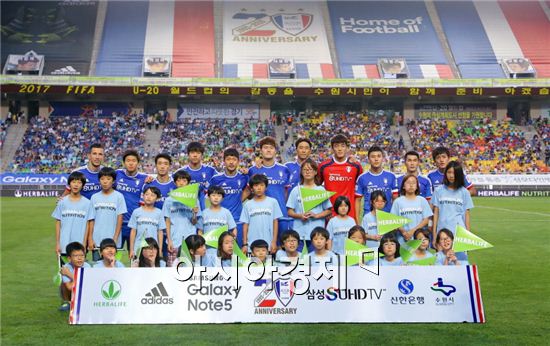 [아시아경제 김현정 기자] 뉴트리션 전문기업 한국허벌라이프는 지난 22일 프로 축구팀 수원삼성블루윙즈의 홈경기장인 수원월드컵경기장에서 '수원삼성블루윙즈와 함께하는 허벌라이프 패밀리데이'를 개최했다고 24일 밝혔다.