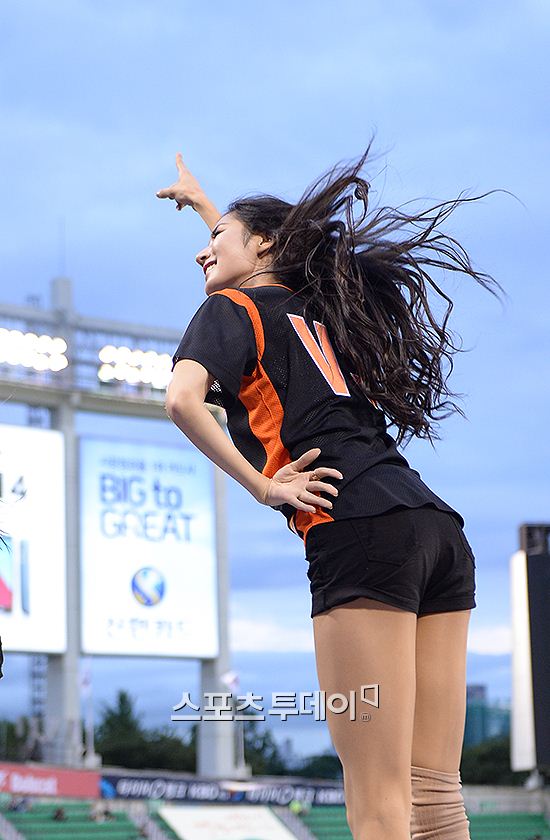 [아시아경제 온라인이슈팀] '2015 타이어뱅크 KBO리그' 두산 베어스-롯데 자이언츠 프로야구경기가 26일 오후 서울 송파구 잠실동 잠실야구장에서 열렸다. 롯데 치어리더 박기량이 응원하고 있다.