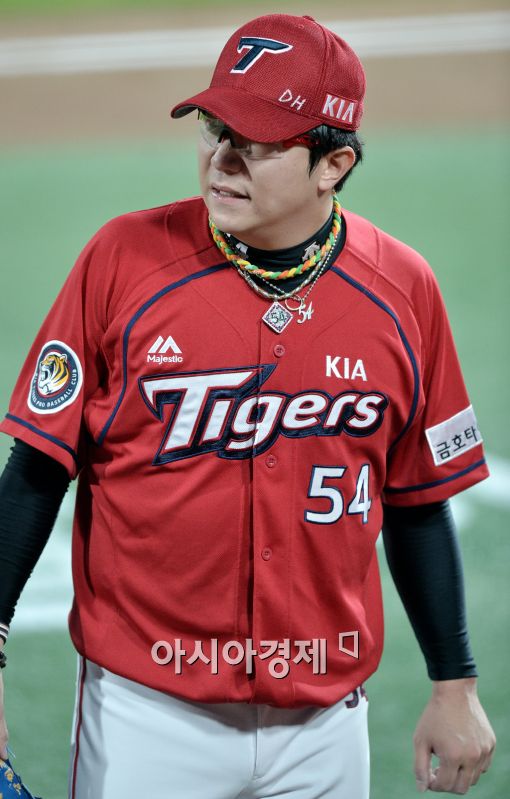 [수원=아시아경제 김현민 기자] 2015 KBO리그 KIA 타이거즈와 kt 위즈의 경기가 28일 수원야구장에서 열렸다. KIA 선발 양현종이 3회말 1사 2루에서 kt 오정복의 타구에 왼쪽 손목을 맞고 고통스러워하고 있다.