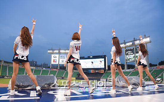 [아시아경제 온라인이슈팀] 2일 오후 서울 송파구 잠실동 잠실구장에서 열린 2015 타이어뱅크 KBO 리그 두산 베어스-SK 와이번스 경기. 치어리더가 응원을 펼치고 있다.