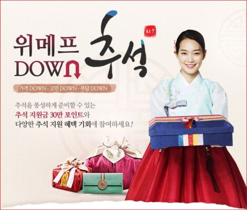 [아시아경제 조강욱 기자] 소셜커머스 위메프(대표 박은상 www.wemakeprice.com)는 오는 29일 오전 10시까지 최대 30만 포인트를 추석 지원금으로 제공하는 '위메프 다운(DOWN) 추석 찬스딜'을 진행한다고 4일 밝혔다.