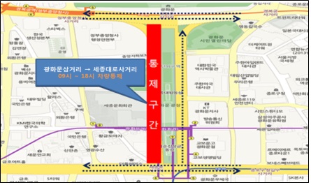 광화문삼거리→세종대로 사거리 방향 차량통행 오전9시~오후6시 통제