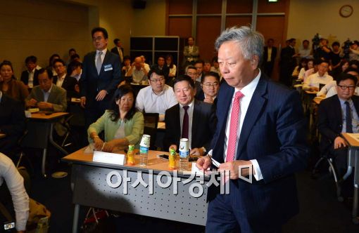 [아시아경제 백소아 기자] 진리췬 아시아인프라투자은행(AIIB) 총재 지명자가 9일 서울 중구 대한상공회의소에서 열린 기업인 간담회에서 'Financing for future'를 주제로 강연하기 위해 강단으로 이동하고 있다. 진리취 AIIB 총재 지명자는 첫 국외방문지로 한국을 선택했다.