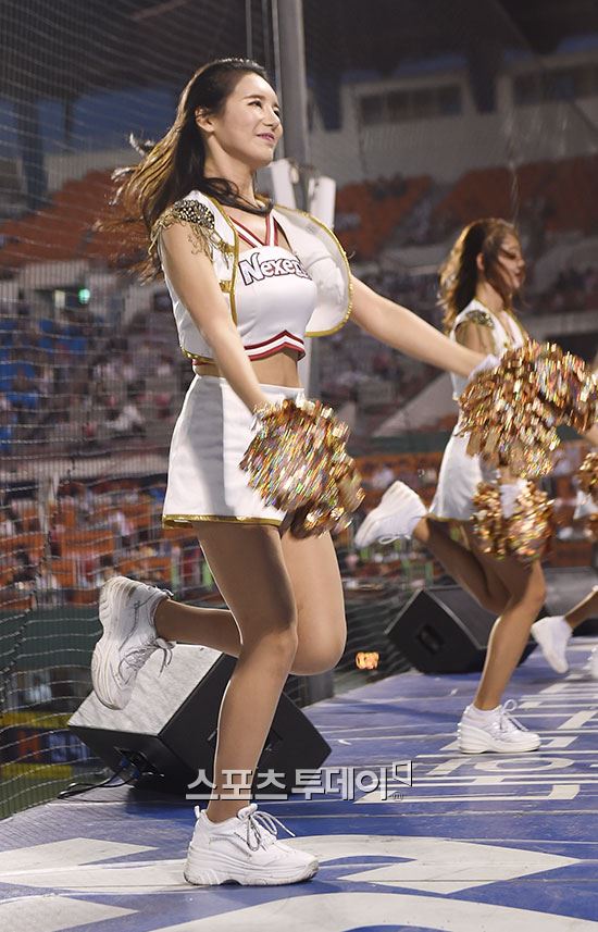 [아시아경제 온라인이슈팀] 9일 오후 서울 양천구 목1동 목동야구장에서 열린 2015 타이어뱅크 KBO 리그 두산 베어스-넥센 히어로즈 경기. 치어리더가 응원을 펼치고 있다.