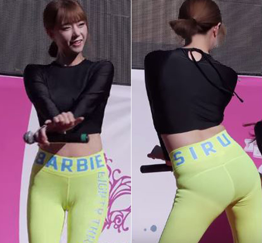 화제가 된 영상을 보면 걸그룹 식스밤 멤버가 형광 타이즈를 입고 춤을 추고 있다. 특히 형광 타이즈 안의 속옷과 신체 굴곡까지 적나라하게 드러나 눈길을 끌었다.