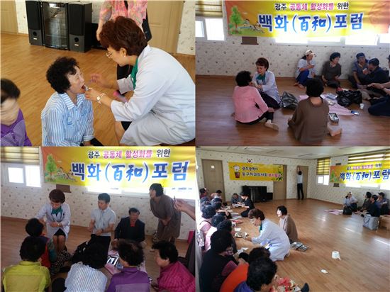 이날 용산경로당 봉사활동에는 백화포럼 회원 10여명과 동구치과의사회 회원 및 불소도포 재료를 후원한 치과 재료 업체 직원이 참석해 40여명의 어르신들께 구강보건 강좌와 불소도포를 실시하고 구강위생용품을 전달했다.
