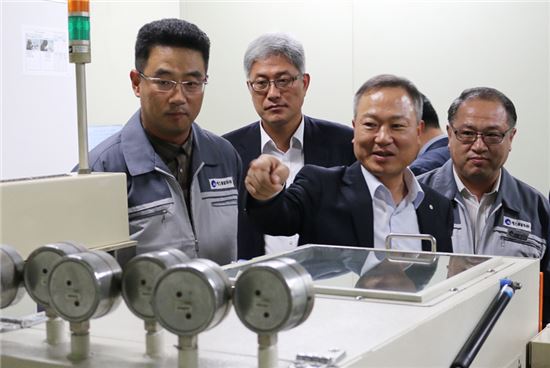 이날 이 사장은 2차 협력사 직원들과 간담회를 가졌다. 변상식 에스티씨전자 사장은 "LG이노텍과의 협력을 사업 경쟁력 향상의 기회로 삼고 있다"며 "설비 지원과 함께 생산성 향상 컨설팅까지 제공 받고 있어 경영활동에 큰 도움이 된다"고 말했다. 인쇄회로기판 가공업체인 에스티씨전자는 지난해 LG이노텍으로부터 생산 설비와 경영 컨설팅을 무상 지원받아 1년 만에 약 50%의 생산성이 향상됐다.
