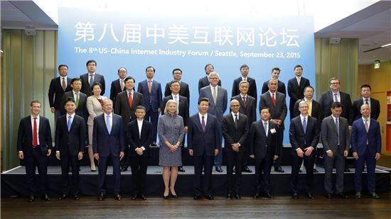24일(현지시간) 나인투파이브맥, 더버지 등 외신에 따르면 미국을 방문중인 시진핑 국가주석은 23일 시애틀에서 열린 '제8차 미-중 인터넷 산업 포럼(Internet Industry Forum)'에서 팀 쿡 애플 CEO를 비롯한 미국의 주요 IT기업 CEO들과 만났다.