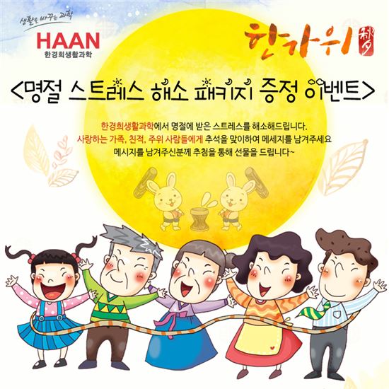 [아시아경제 이창환 기자] 건강생활용품 전문기업 한경희생활과학은 민족 대명절 추석을 맞아 ‘명절 스트레스 해소 패키지 증정 이벤트’를 개최한다고 26일 밝혔다.