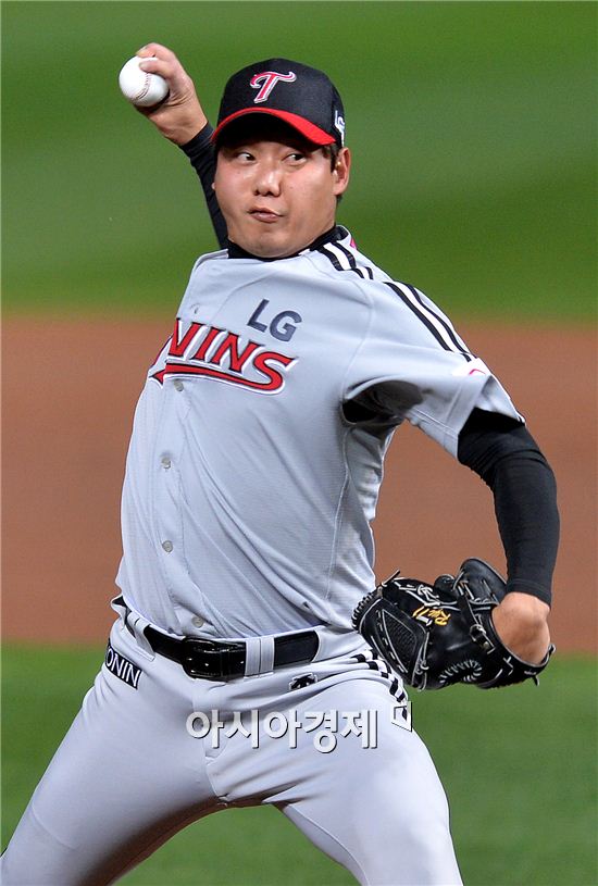 [인천=아시아경제 김현민 기자] 2015 KBO리그 LG 트윈스와 SK 와이번스의 경기가 30일 문학야구장에서 열렸다. LG 선발투수 류제국이 역투하고 있다.