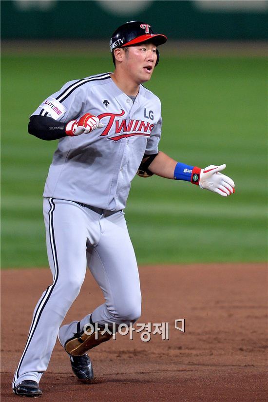 [인천=아시아경제 김현민 기자] 2015 KBO리그 LG 트윈스와 SK 와이번스의 경기가 30일 문학야구장에서 열렸다. 2회초 무사 1루에서 LG 양성환이 좌중간 2루타를 치고 출루한 뒤 1루주자가 쇄도한 홈을 바라보고 있다.