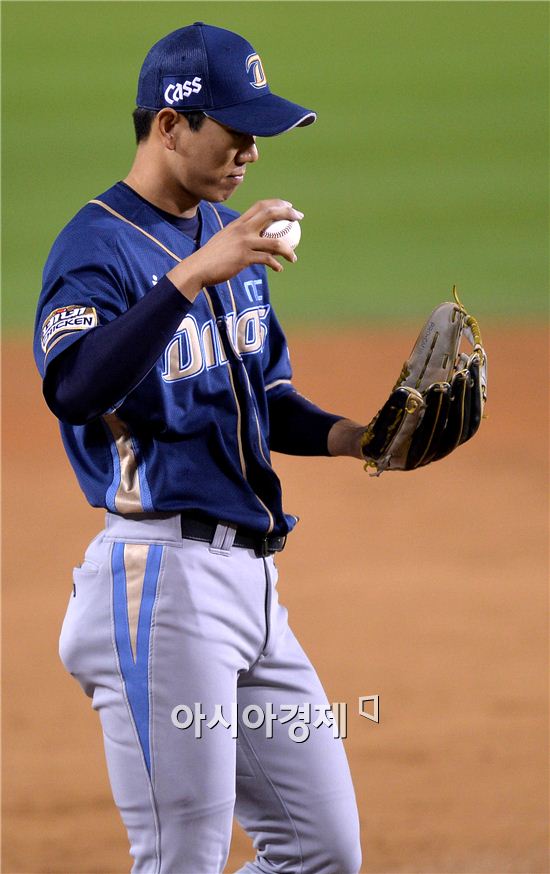 [잠실=아시아경제 김현민 기자] 프로야구 NC 다이노스가 2015 KBO리그 LG 트윈스와의 원정경기에서 7-2로 이기며 4연승을 했다. 9회말 2사 만루에서 NC 3루수 모창민이 LG 강병의의 타구를 놓치며 실책한 뒤 아쉬워하고 있다.