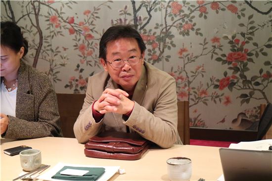 오랜만에 여는 신작전의 주제는 내년 5월 100주년을 맞는 원불교의 대표 경전 '대종경'이다. 무려 3년 동안 '대종경 목판 경전'을 만드는 데 매진해온 그가 소개할 작품은 205점이나 된다. 전시를 앞둔 지난 15일 서울 중구 파이낸스센터 지하 한식당에서 작가를 만났다. 그는 "5년 전 원불교 측으로부터 목판 경전을 제안 받았다. 1년 반 동안은 경전을 읽는 데만 시간을 할애했다. 3년 전부터는 정말 아무것도 안하고 목판만 만들었다. 밑그림으로는 300점이 넘는데, 총 200여점으로 압축했다"고 했다.