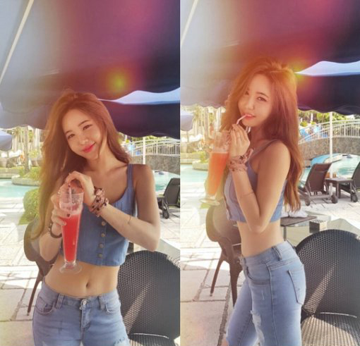 사진 속 강예빈은 데님 소재의 민소매 튜브톱과 스키니진을 입고 잘록한 허리라인을 뽐냈다.
