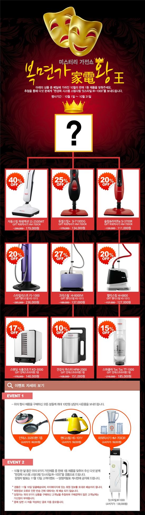 김명진 한경희생활과학 마케팅 실장은 “인기 예능 ‘복면가왕’을 패러디한 퀴즈는 물론 할인 및 경품 증정 등 다양한 혜택을 드릴 수 있는 이벤트를 기획하게 됐다”며 “한결같은 사랑을 보내주시는 고객들께 즐거움을 드리는 기회가 되기를 바란다”고 했다.