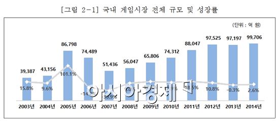 [아시아경제 안하늘 기자] 지난해 우리나라 게임시장은 전년도의 하락세(?0.3%)를 극복하고, 2.6%의 성장률을 보이며 반등하는 데 성공한 것으로 조사됐다.