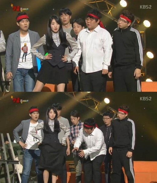 [아시아경제 온라인이슈팀] ‘개그콘서트’ 미녀 개그우먼 허민의 다리에 개그맨들의 시선이 집중됐다.
