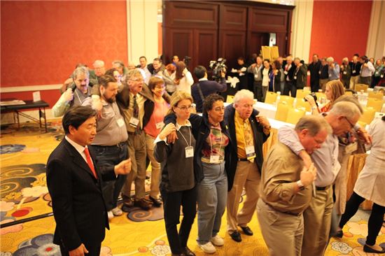 이날 교육에서 200여명의 미국 의료진들은 신준식 박사의 지도에 따라 한방 침 치료법을 실습했다.