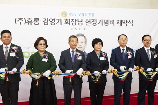 이에 지난 11일 김해 휴롬 본사에서 휴롬 임직원과 협력업체, 그리고 IBK기업은행의 권선주 은행장을 비롯한 관계자들이 참석해 김 회장의 흉상 및 기념비 제막식을 진행했다고 휴롬 측은 설명했다.