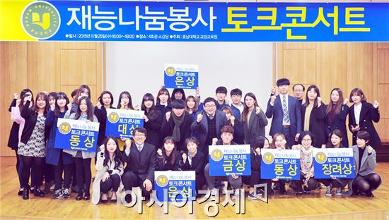 [아시아경제 노해섭 기자]재학생들의 전공 연계 봉사활동 성과를 공유하는 호남대학교 교양교육원(원장 송창수) ‘우리들의 재능나눔봉사 토크 콘서트’가 11월 25일 상하관 1층 소강당에서 열렸다.