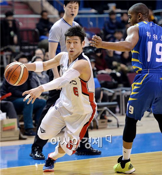 [잠실=아시아경제 김현민 기자] 2015-2016 프로농구 서울 삼성과 울산 모비스의 경기가 26일 잠실실내체육관에서 열렸다. 모비스 양동근이 상대 수비를 뚫고 공격하고 있다.