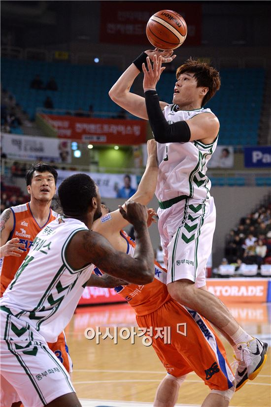 [인천=아시아경제 김현민 기자] 2015-2016 프로농구 인천 전자랜드와 원주 동부의 경기가 28일 인천 삼산월드체육관에서 열렸다. 동부 윤호영이 상대 수비를 뚫고 공격하고 있다.