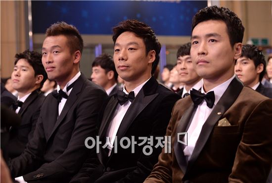 [아시아경제 김현민 기자] 2015 K리그 대상 시상식이 1일 서울 홍은동 그랜드힐튼호텔에서 열렸다. 대상 후보자 이동국(왼쪽부터), 염기훈, 김신욱이 자리하고 있다.