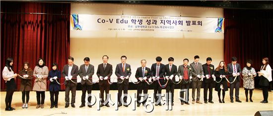 [아시아경제 노해섭 기자]남부대학교의 장애아동을 위한 Co creative Vision-Up Education 사업단(단장 박윤 유아교육과 교수)이 3일 교내 협동관에서 2015 학생 성과 지역사회 발표회 및 지역사회 학생-전문가 컨퍼런스를 열었다. 이날 행사에는 500여명의 학생이 참석했다.
