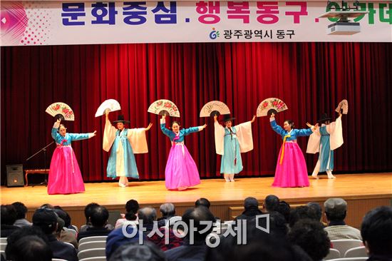 [포토]광주 동구아카데미, 200회 특별 강연 광주 동구는 4일 동구아카데미 200회를 맞아 김동준 가야금 병창팀과 씨밀레 민요춤 동아리의 흥겨운 식전공연과 함께 권석만 서울대학교 교수의 ‘심리학에서 본 행복의 비결’이란 주제로 동구아카데미 특별 강연을 실시했다.