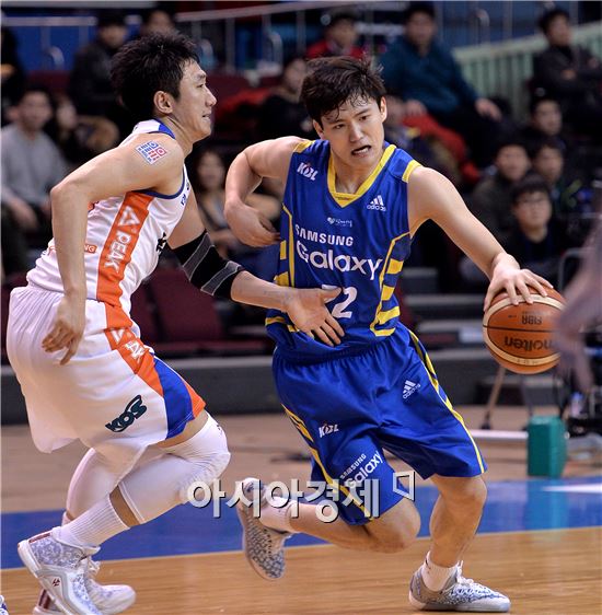 [잠실=아시아경제 김현민 기자] 2015-2016 프로농구 서울 삼성과 인천 전자랜드의 경기가 4일 잠실실내체육관에서 열렸다. 삼성 이동엽이 상대 수비를 뚫고 공격하고 있다.