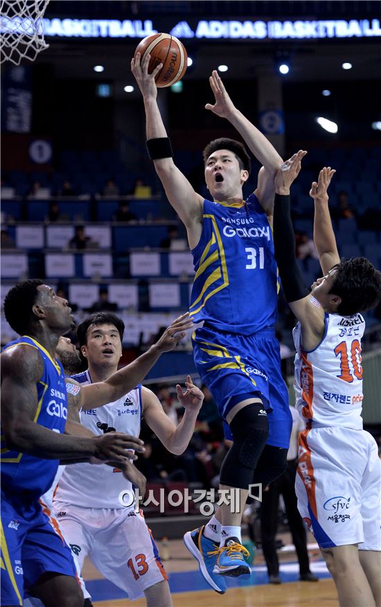 [잠실=아시아경제 김현민 기자] 2015-2016 프로농구 서울 삼성과 인천 전자랜드의 경기가 4일 잠실실내체육관에서 열렸다. 삼성 김준일이 상대 수비를 뚫고 공격하고 있다.