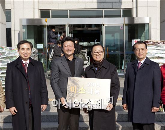"이웃과 쌀로 웃음을 함께 나누자"는 의미의 미소(米笑)나눔 사업의 일환으로 마련된 이날 행사에는 김창대 재단 고문을 비롯해 김만수 부천시장, 이성화 부천시 기독교총연합회 총회장, 류철랑 부천동광교회 목사 및 교계 지도자들이 참석했다.