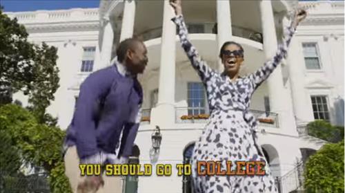 코미디영상을 주로 만들어 온 콘텐츠제작단체 ‘칼리지유머’는 10일(현지시간) 코미디언 제이 파로아와 미셸 오바마가 함께 랩으로 대학 진학을 권유하는 내용이 담긴 약 1분35초 분량의 영상을 유튜브 등을 통해 공개했다.