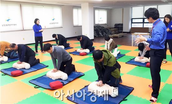 [아시아경제 노해섭 기자]광주 광산구(구청장 민형배)는 지난 10일 오후 송정2동 주민센터에서 자동심장충격기 사용법과 응급처치 요령을 소개하는 교육을 실시했다. 교육에는 공동주택, 복지시설, 동주민센터 관계자 50여 명이 참여했다.