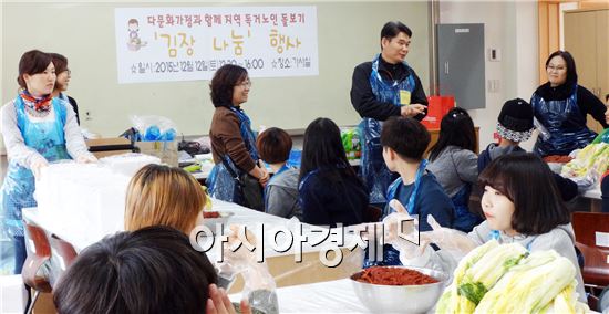 [아시아경제 노해섭 기자]광주시 광산구 산정중학교 학부모회(회장 김학휘)는 지난 12일 ‘다문화 가정과 함께 지역독거노인 돌보기 김장나눔 행사’를 열었다.