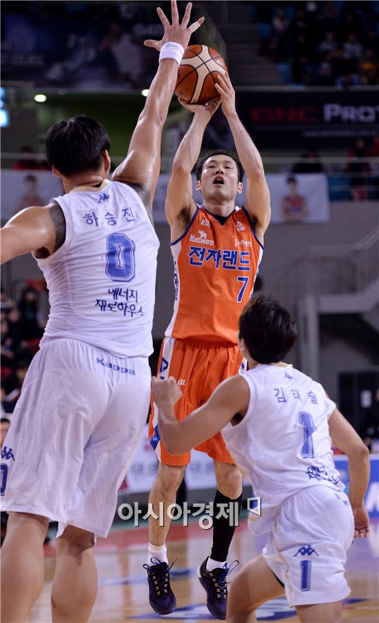 [인천=아시아경제 김현민 기자] 2015-2016 프로농구 인천 전자랜드와 전주 KCC의 경기가 13일 인천 삼산월드체육관에서 열렸다. 전자랜드 박성진이 상대 수비를 뚫고 공격하고 있다.