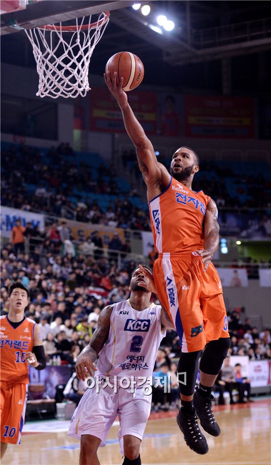[인천=아시아경제 김현민 기자] 2015-2016 프로농구 인천 전자랜드와 전주 KCC의 경기가 13일 인천 삼산월드체육관에서 열렸다. 전자랜드 콘리가 상대 수비를 뚫고 공격하고 있다.